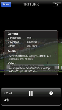 • Shows detailed stream information (audio & video codecs, total streamed data in bytes, connection type)